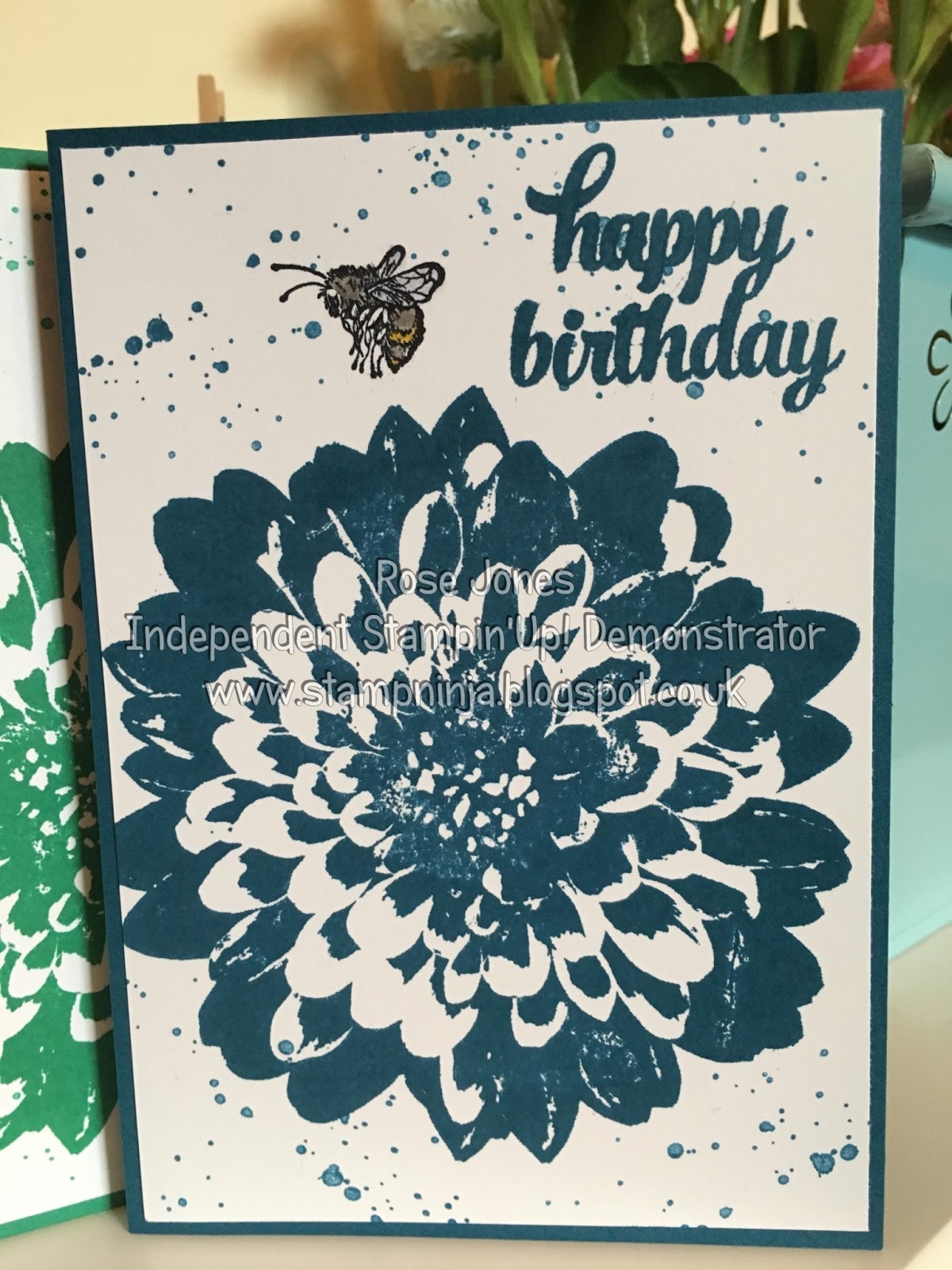 And inside are five Birthday Cards in the beautiful NEW In Colours, I used the Stamp Definitely Dahlia for the main image and some Gorgeous Grunge around the edges.